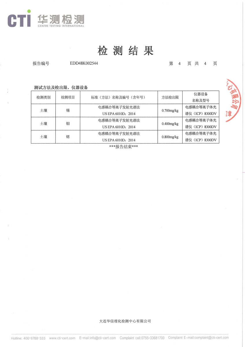 遼寧聯(lián)港染料化工有限公司土壤檢測(cè)結(jié)果